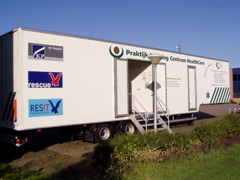 Meditrailer voor BE rijbewijs. Klik op foto. EHBO post, huisartsenpost, politiepost.