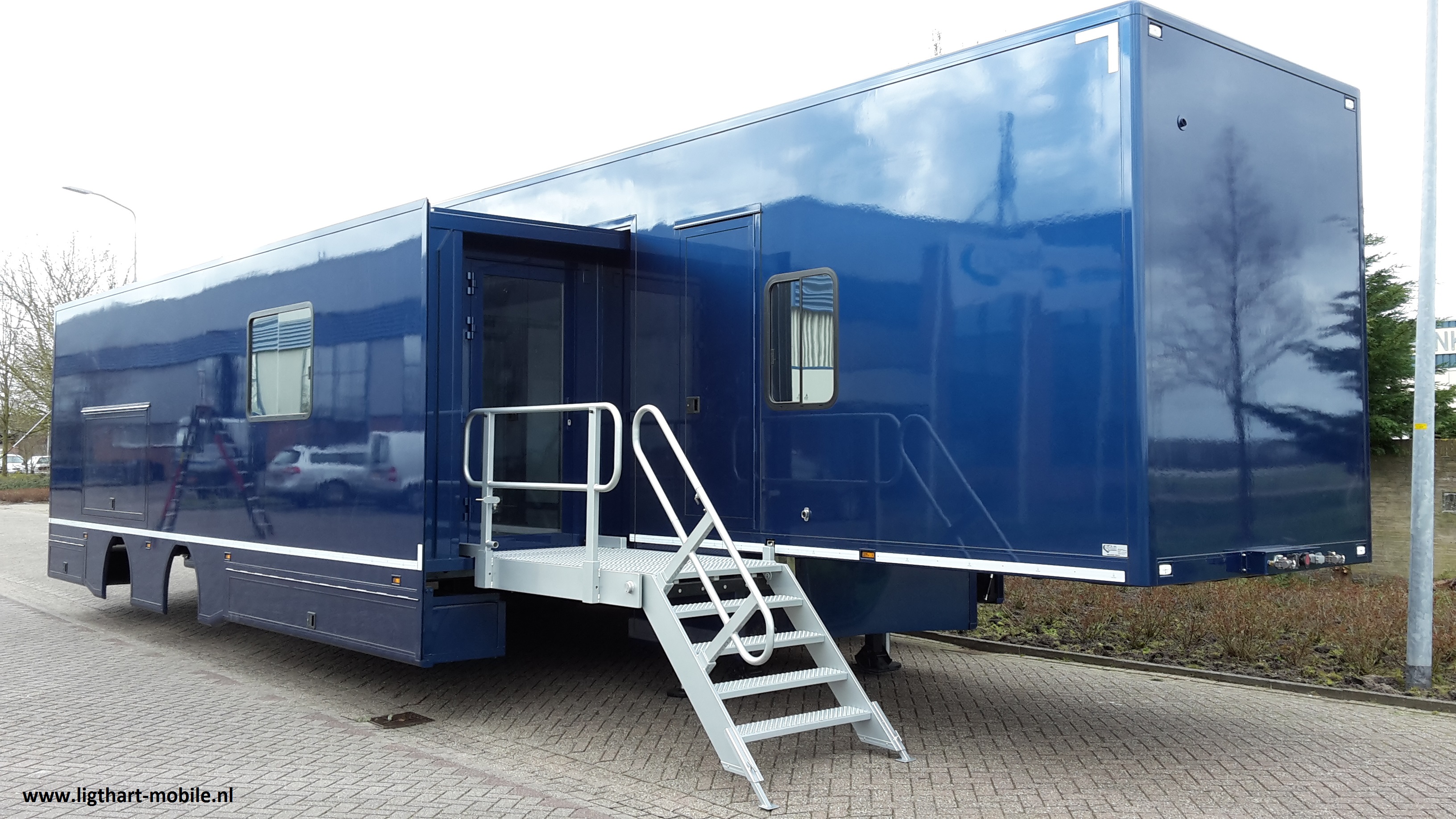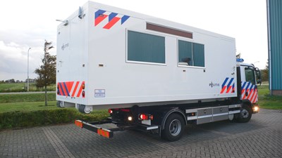 Mobiele commando trailers: extra large, centralisten ruimte, vergaderruimte, keuken, prive ruimte`s voor slapen en verblijven. MCU , Copi.