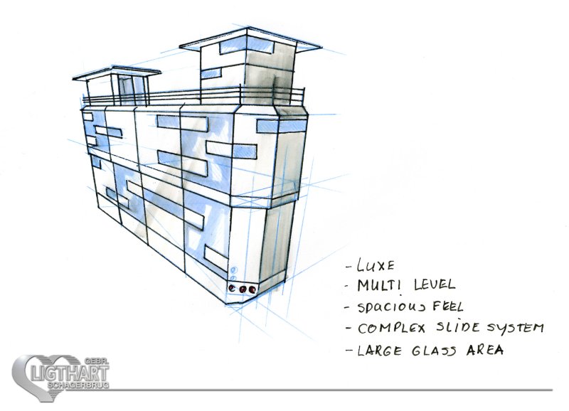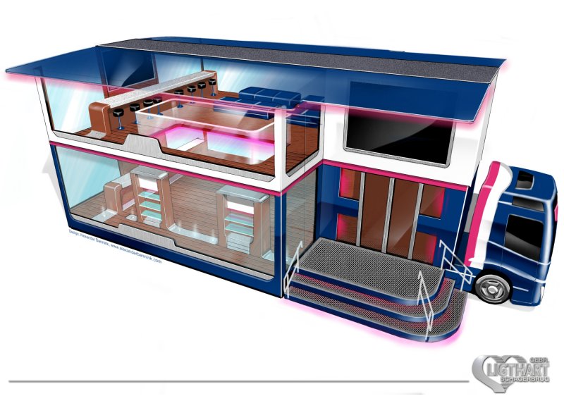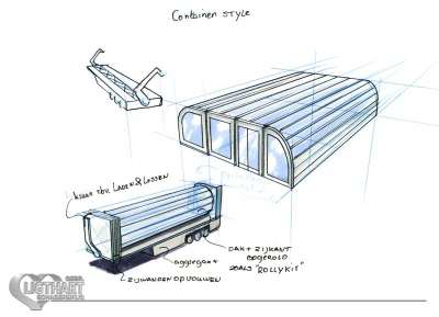 Van eerste schets naar vip room, skybox, racetrailer of .... Klik op foto Van schets naar verdere ontwerp...... Klik op foto. copyright.