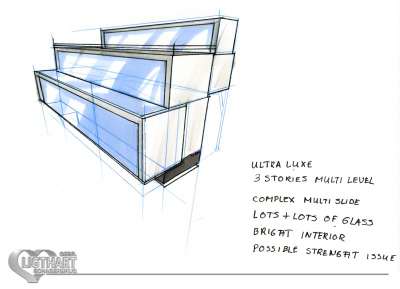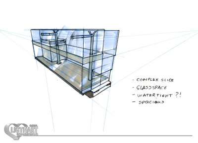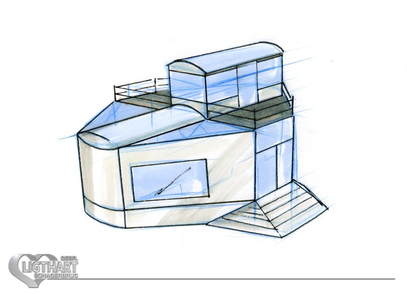 Van schets naar ontwerp Skybox, viproom, hospitality of ..... Klik op foto. Copyright. ( eventueel met waterval bij entree )