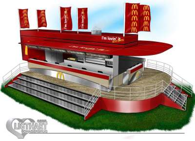 Mobile fast food, volautomatische bereiding, tientallen uitgifte punten, geleiding van publiek stromen, mega capaciteit per uur. Klik op foto.
